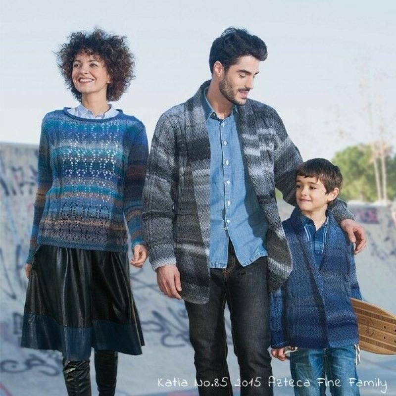 Katia Azteca Fine - Das perfekte Garn für Winterstrickmode. Azteca Fine hat eine sehr lange Lauflänge und eine feine Strickstärke. Weil der Faden eine gedrehte Struktur hat, ist das Garn robust und formfest. Durch die leich unregelmäßige Struktur des Fadens und die melierten Farben wird jedes Projekt einzigartig!